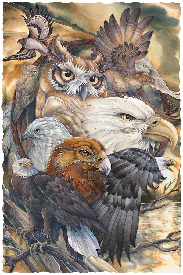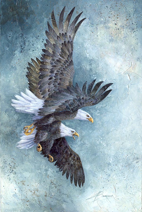 Two Bald Eagles surround their cousin the Golden Eagle. The energy and majestic appearance of eagles is above all birds.