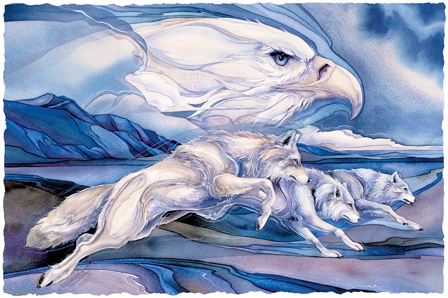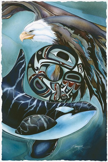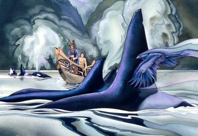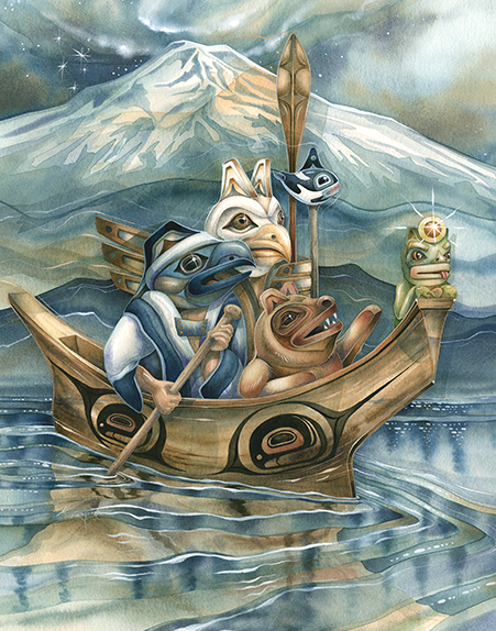 This image was originally commissioned by the Nisqually tribe for the art to create blankets for the Canoe Journey. I believe the ancestors are always near when the tribal members take to their canoes.