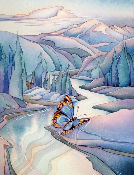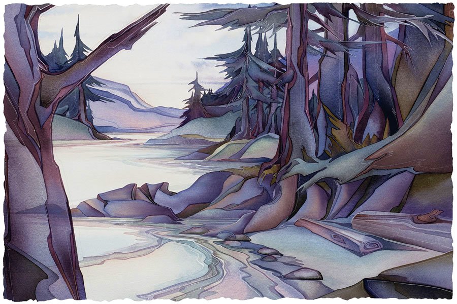 My memories of the San Juans Islands created these abstracted paintings of a place that I remember the feeling, the beauty, the magic…but the details have faded away. The trees are alive with strands of energy, the rocks and islands are no longer solid and the currents in the water flow like a song. This is the reality that stays with me long after the moment has passed. “Beauty seen is never lost.” J. Whittier