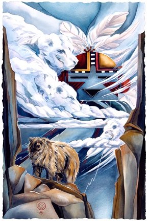 I had a dream of two white buffalos on a snowy mountain. As they ran they created thunder and a great Snow Katchina rose over them.